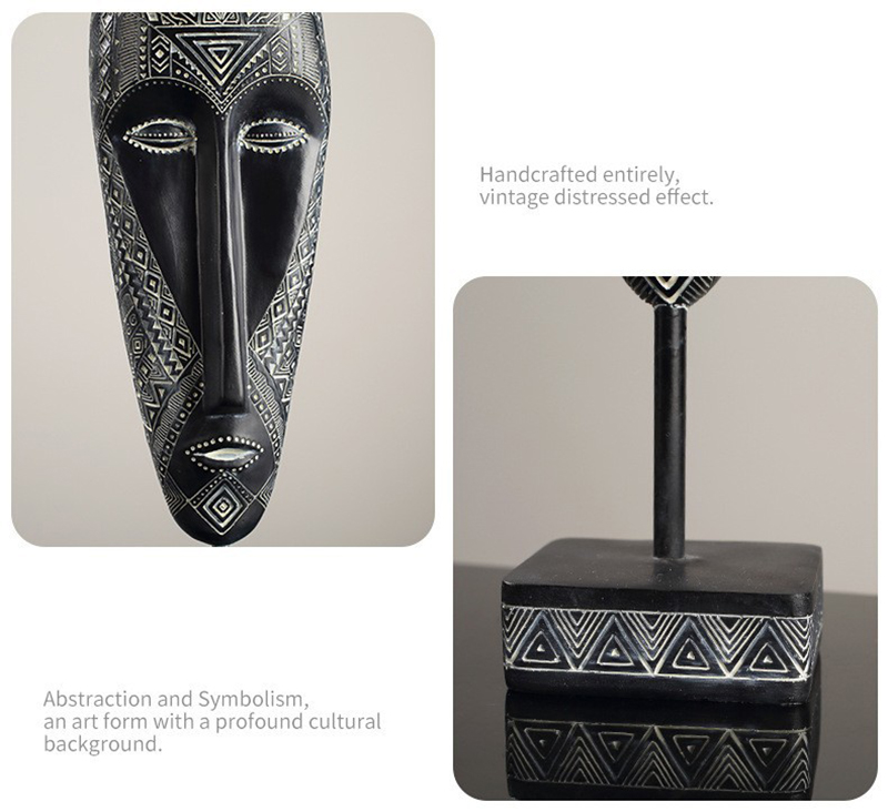 African Style Face Mask Ornament Sculpture Decoration Resin Arts And Crafts Originality Pattern Carving Retro With Base For HomeAfrican Style Face Mask Ornament Sculpture Decoration Resin Arts And Crafts Originality Pattern Carving Retro With Base For Home