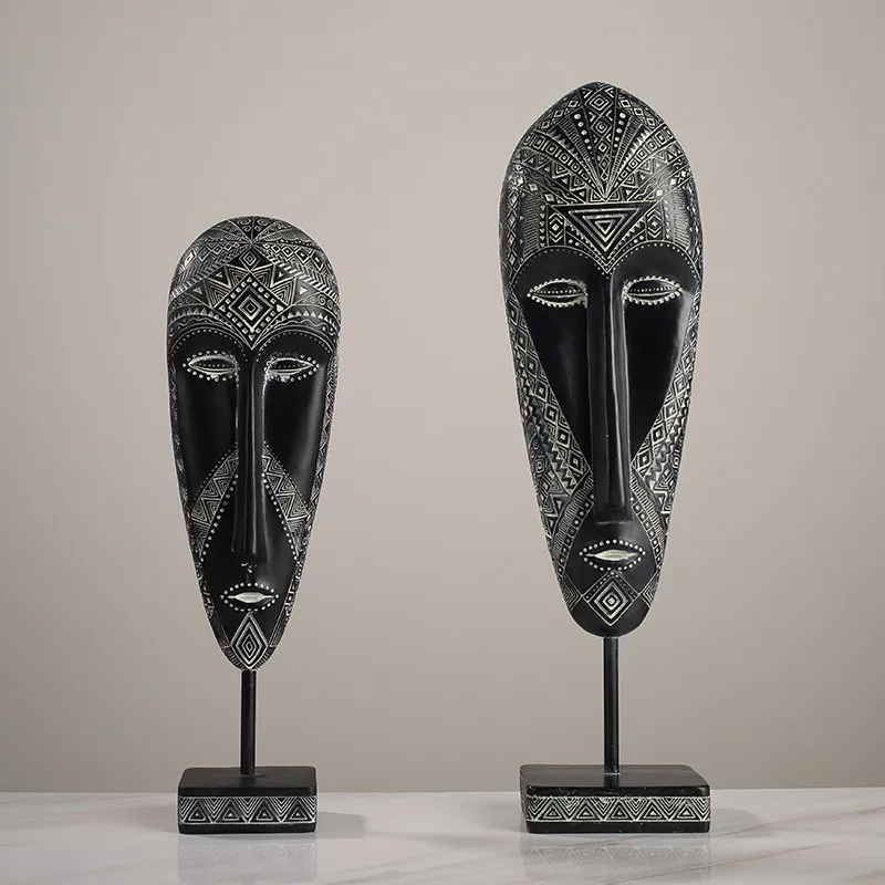 African Style Face Mask Ornament Sculpture Decoration Resin Arts And Crafts Originality Pattern Carving Retro With Base For HomeAfrican Style Face Mask Ornament Sculpture Decoration Resin Arts And Crafts Originality Pattern Carving Retro With Base For Home