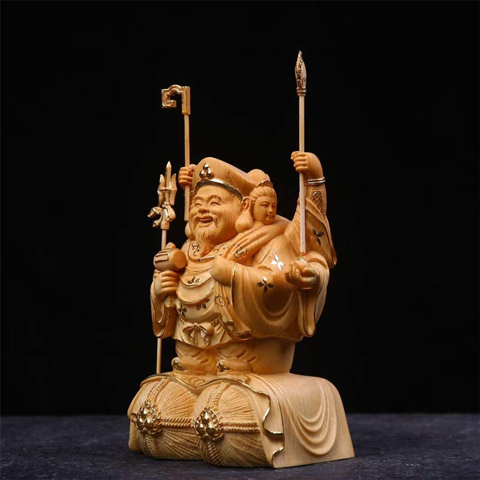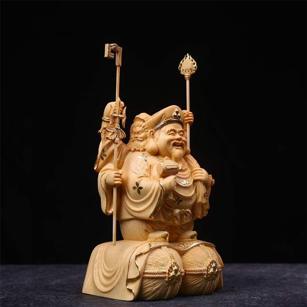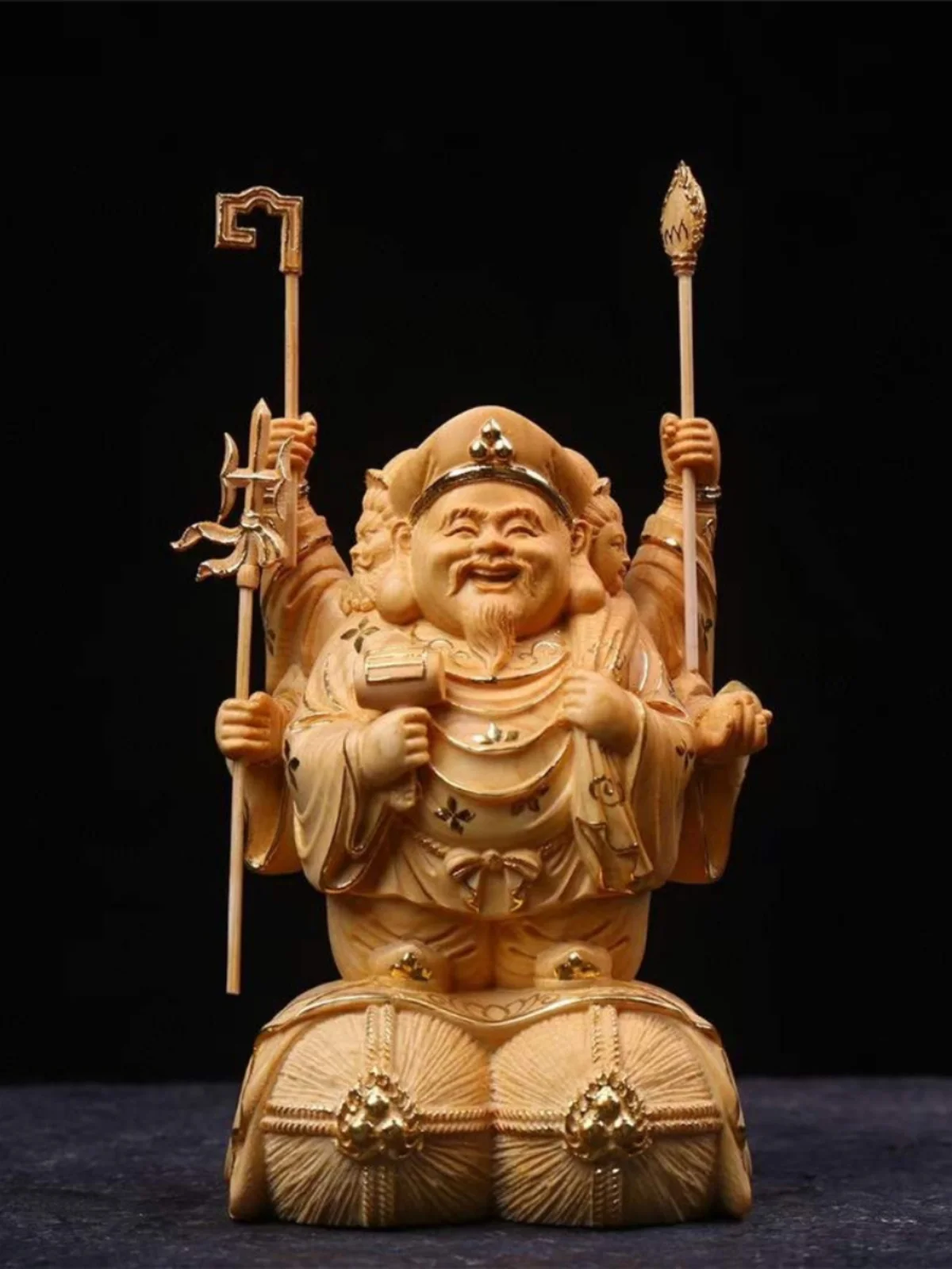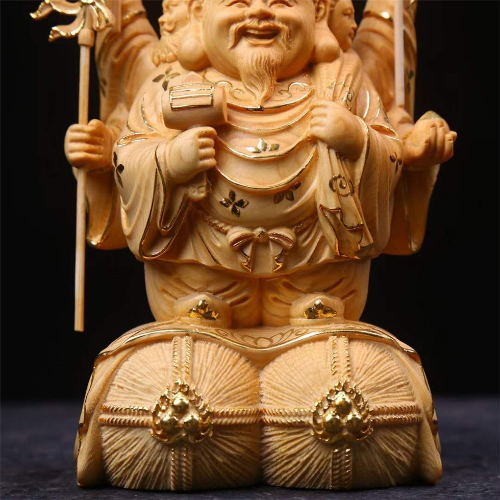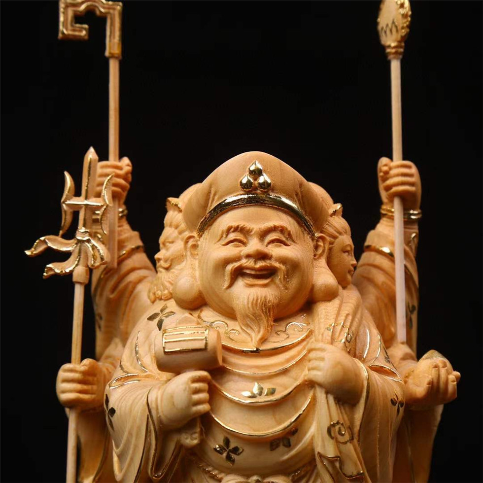 Buy Hand Carved Hinoki Wood Three Faced Mahakala Statue Figurine – Buddhist Protector Deity Wealth God Ornament Home Office Desk