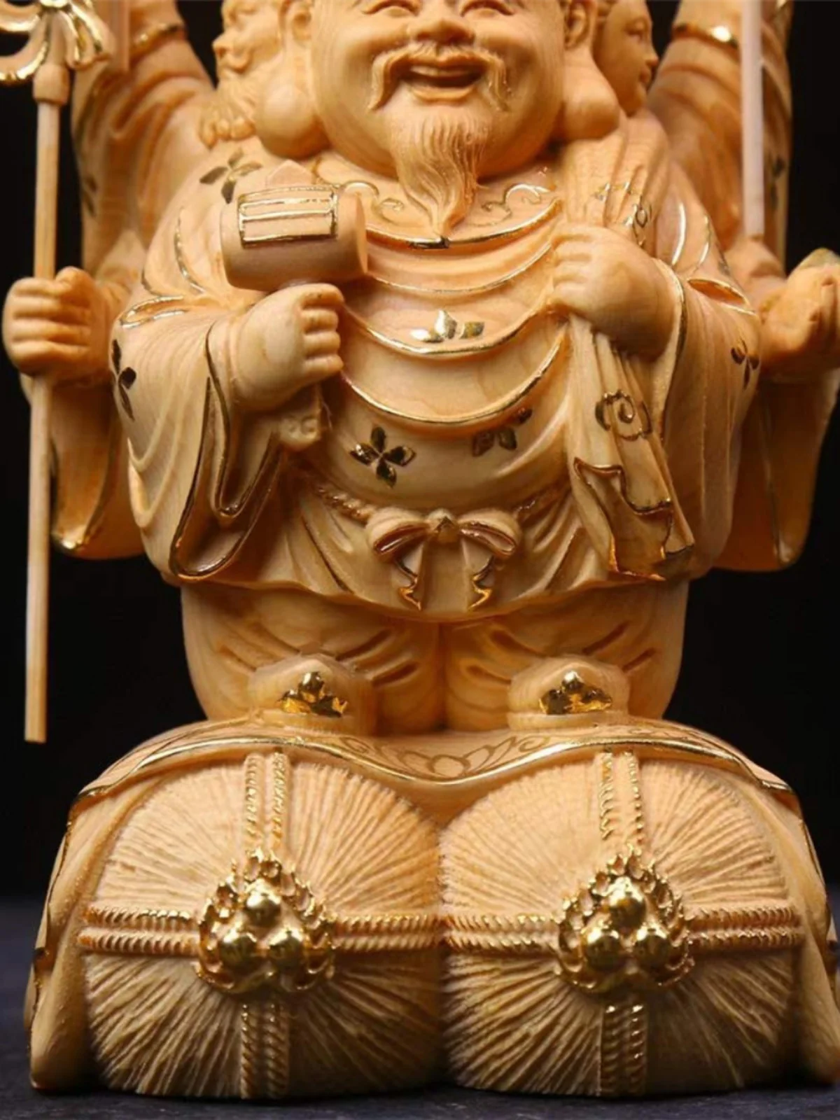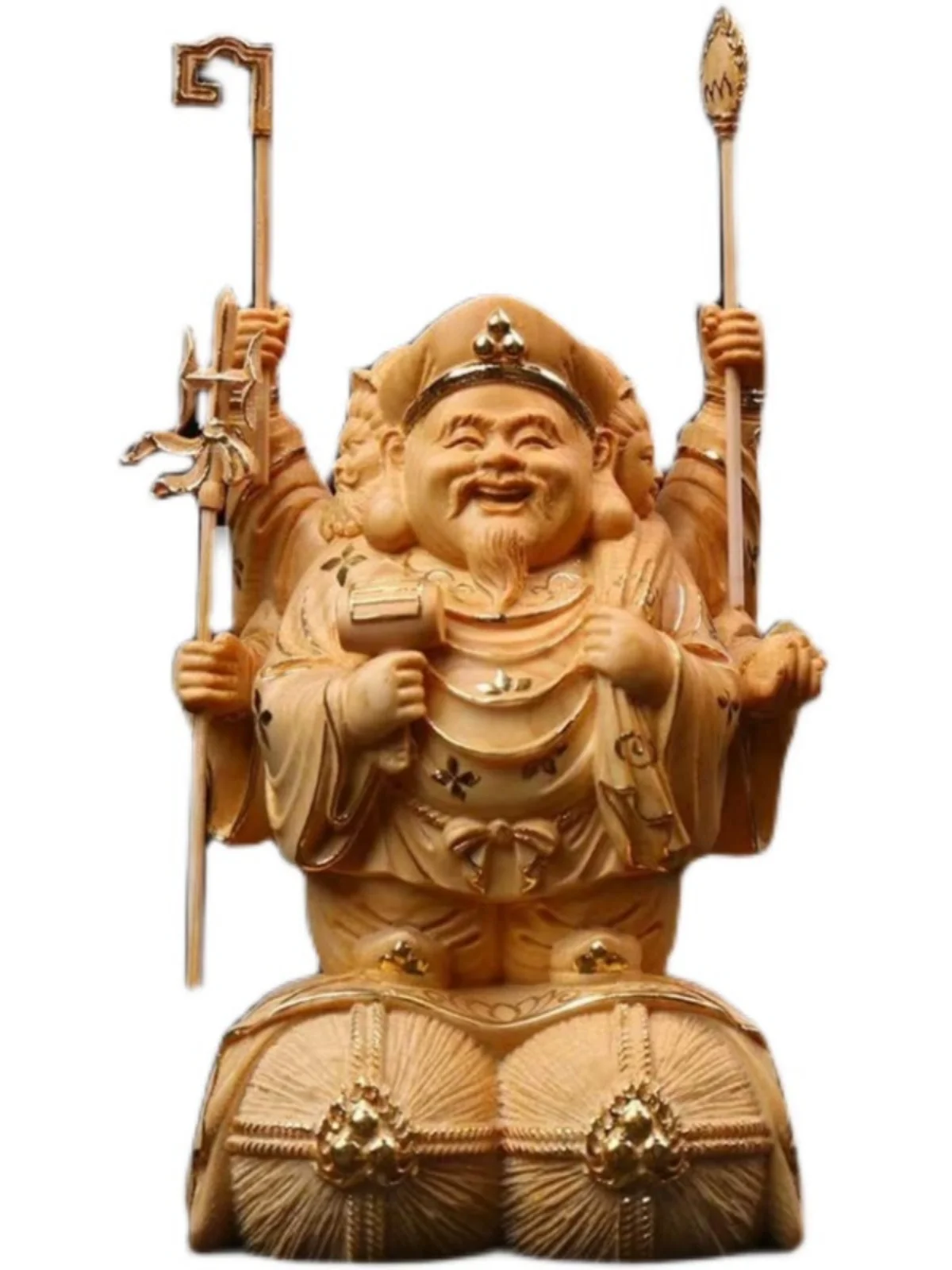 Be the first to review “Hand Carved Hinoki Wood Three Faced Mahakala Statue Figurine – Buddhist Protector Deity Wealth God Ornament Home Office Desk”