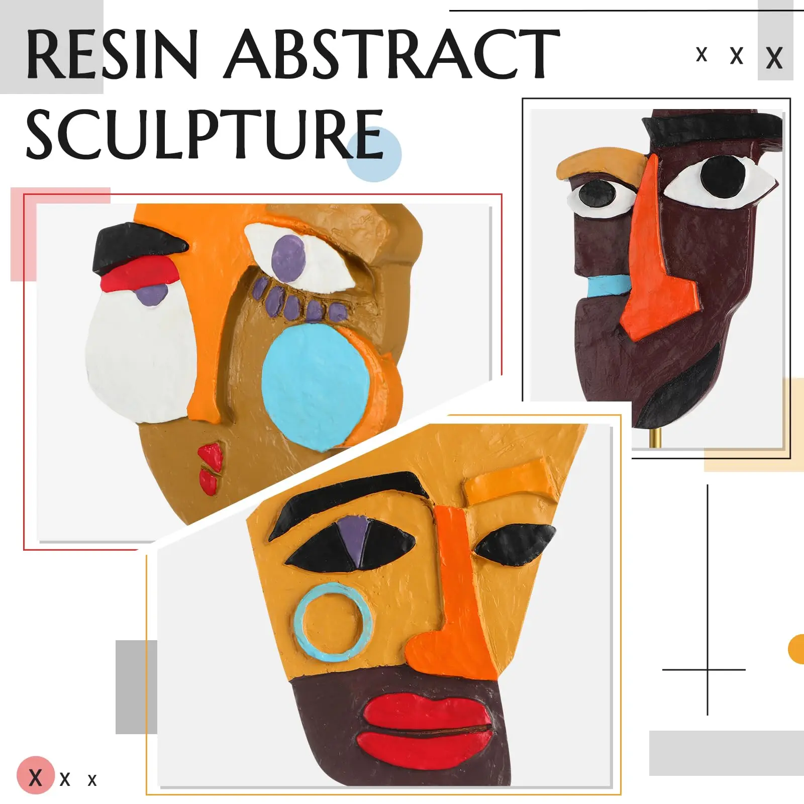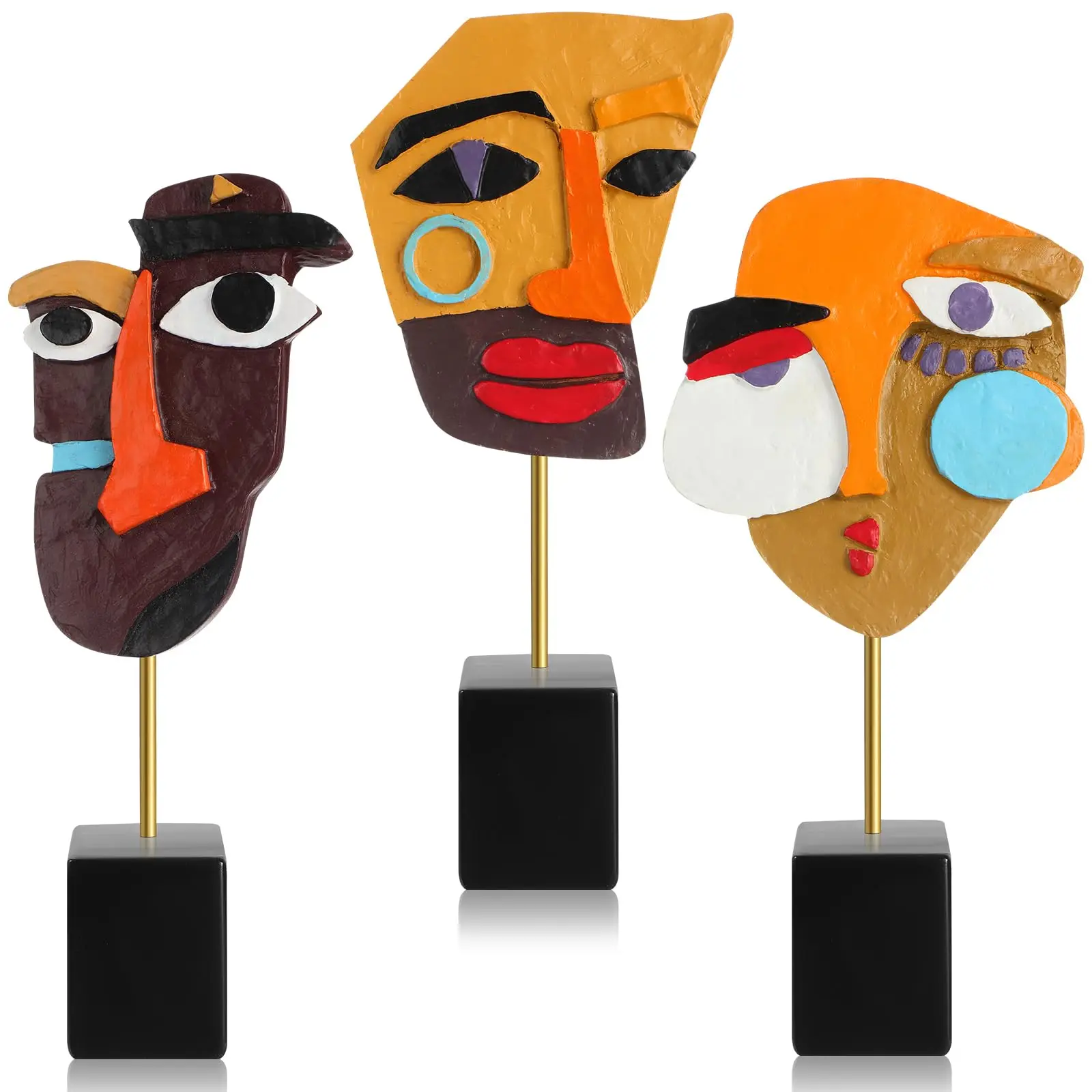 Buy Resin Abstract Sculptures Home Decor Modern Contemporary Statue African Art Tribal Figurines Funky Face Decor Gifts for Office