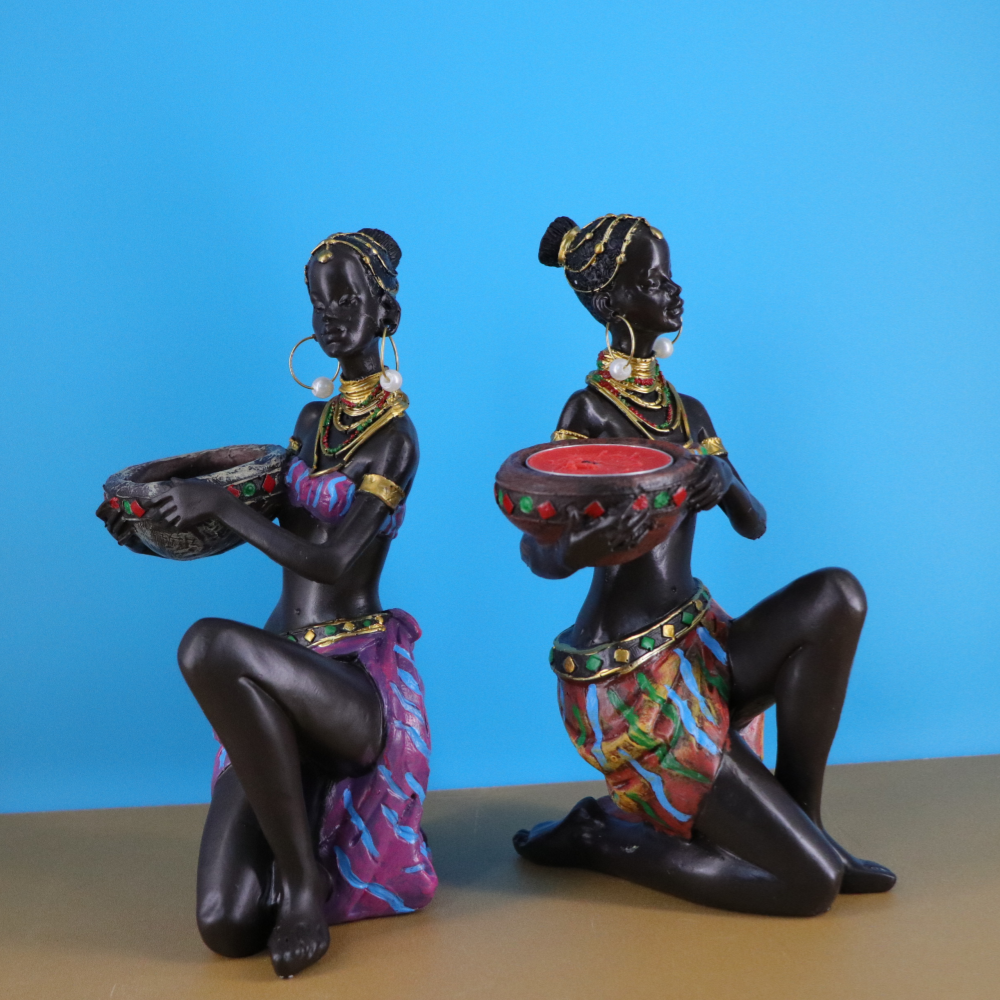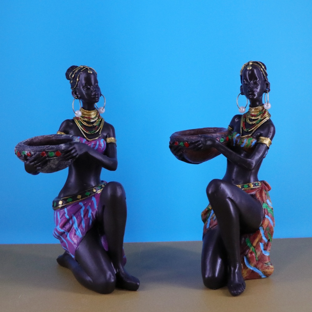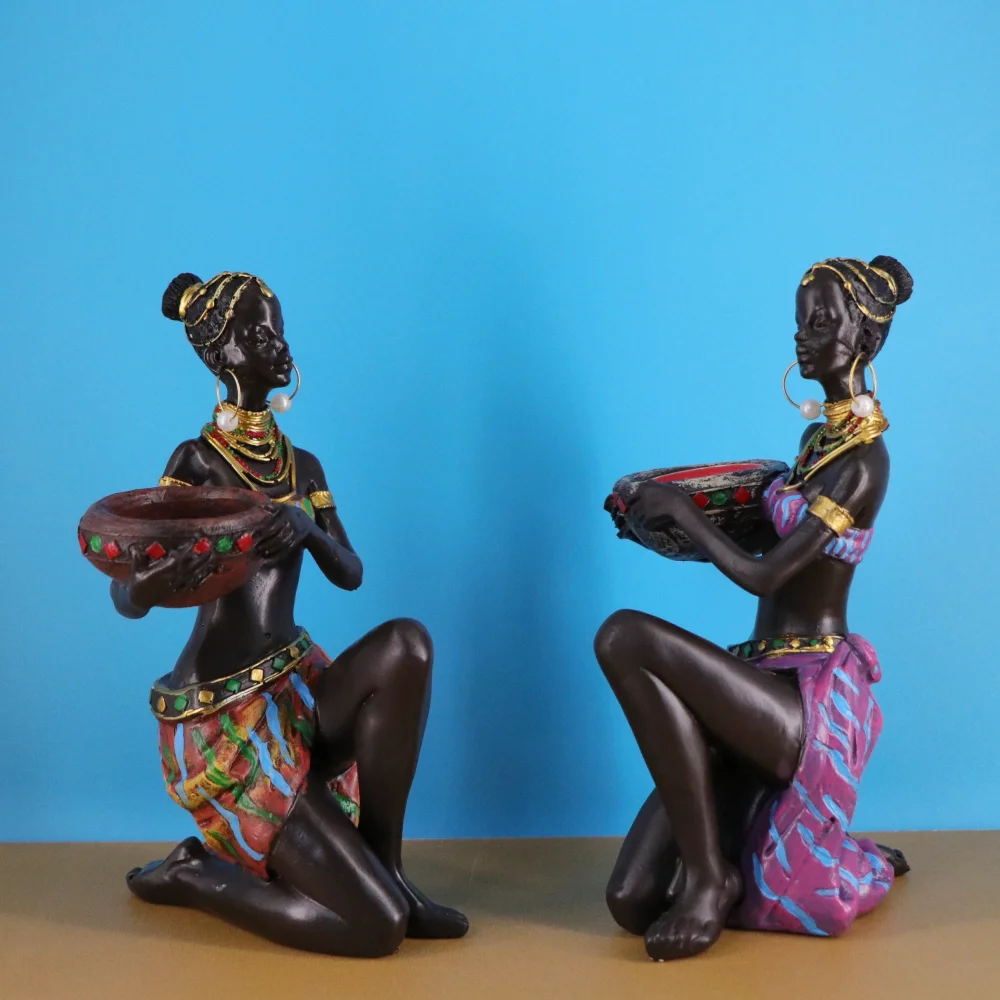 Resin Crafts Realistic Character Sculpture Black Africans Woman Art Girl Decorative Figurines Home Decoration Accessories